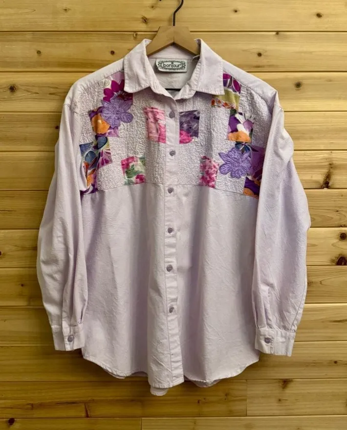 Vintage Bonjour Size Lavender Abstract Floral Button Up Lagenlook Top Purple Size L - $18 - From Sadie