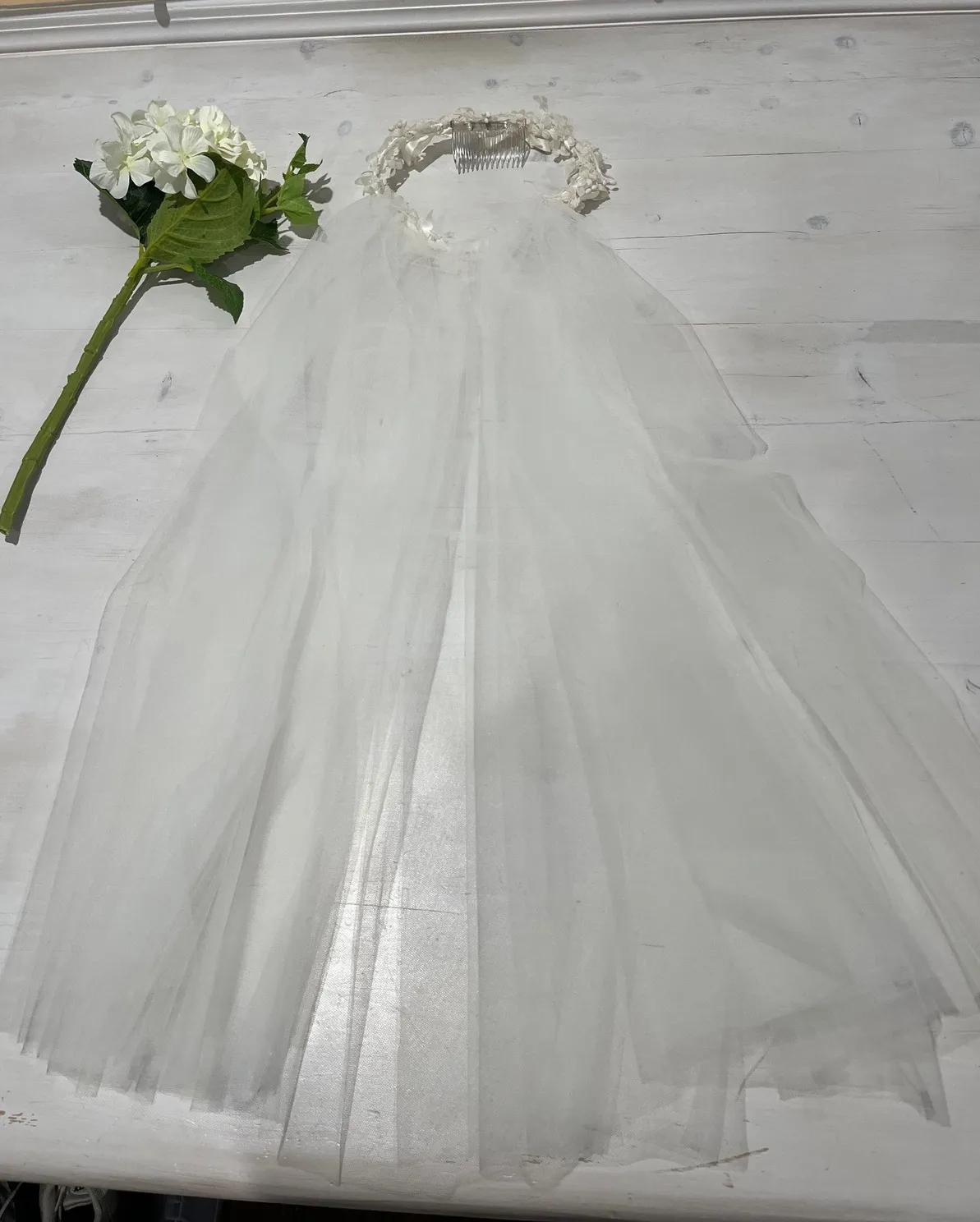 Elegant vintage bridal veil and floral headpiece, a timeless accessory for the bride. The veil is a... Show more