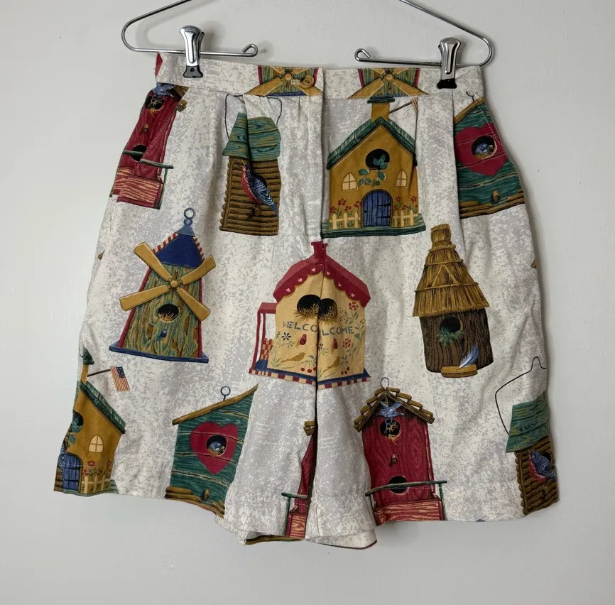 These are so fun! Perfect for the fun and eclectic bird watcher. Or just wear them while you garden. Great for garden photo ops. Excellent condition. Measurements below. 18.5” total length 13” waist laying flat across 7.5” inseam 13” rise 13” wide leg opening laying flat across
