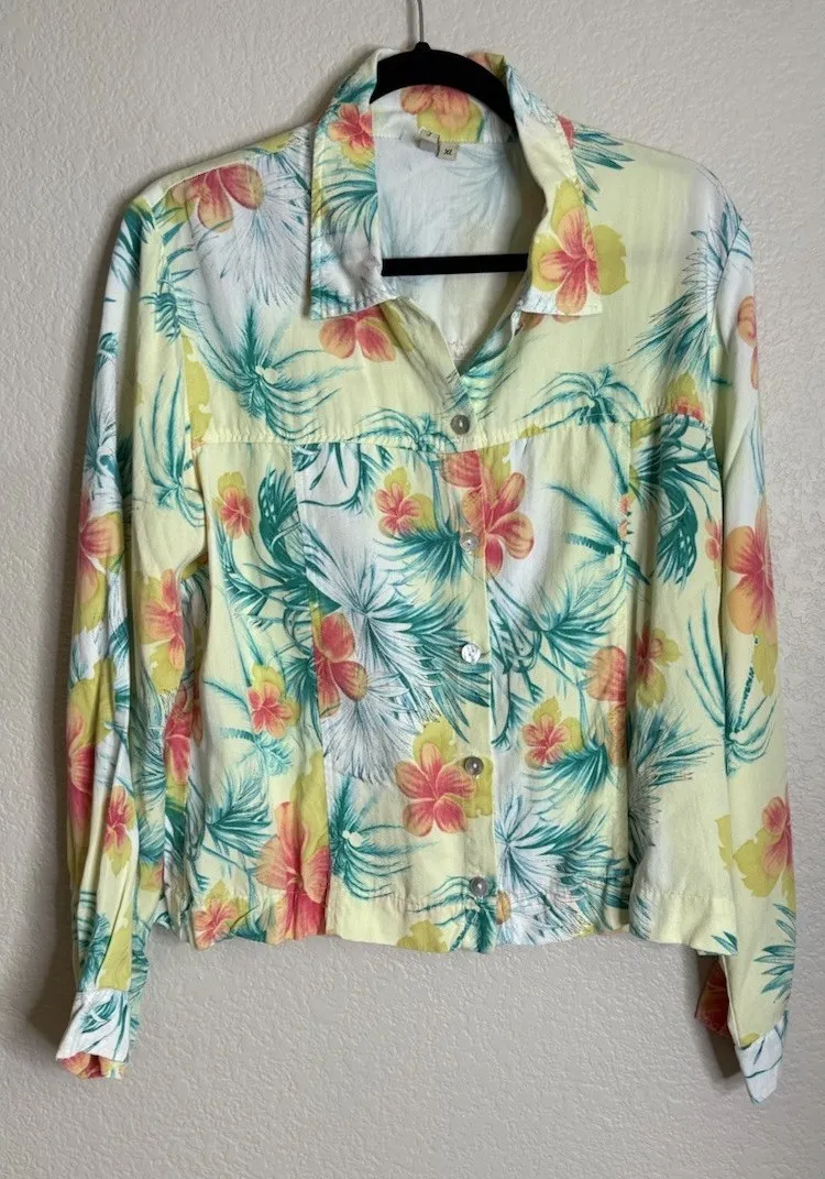 Vintage By JJ Womens XL Floral Blouse Jacket Button Front‎ Beach Tropical Fairy - $25 - From Andrea