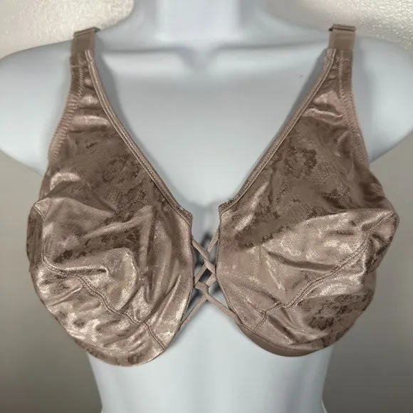 This vintage 34DD Cabernet bra is perfect for adding a touch of glamour to your everyday. Featuring a satin beige material with a double knot design and an animal print, it's a must-have for your lingerie collection. • Vintage Cabernet bra • Size 34DD • Satin beige material for a touch of luxury • Double knot design for added style • Animal print detailing for a trendy look Size: Womens 34DD Condition: Pre-Owned Good