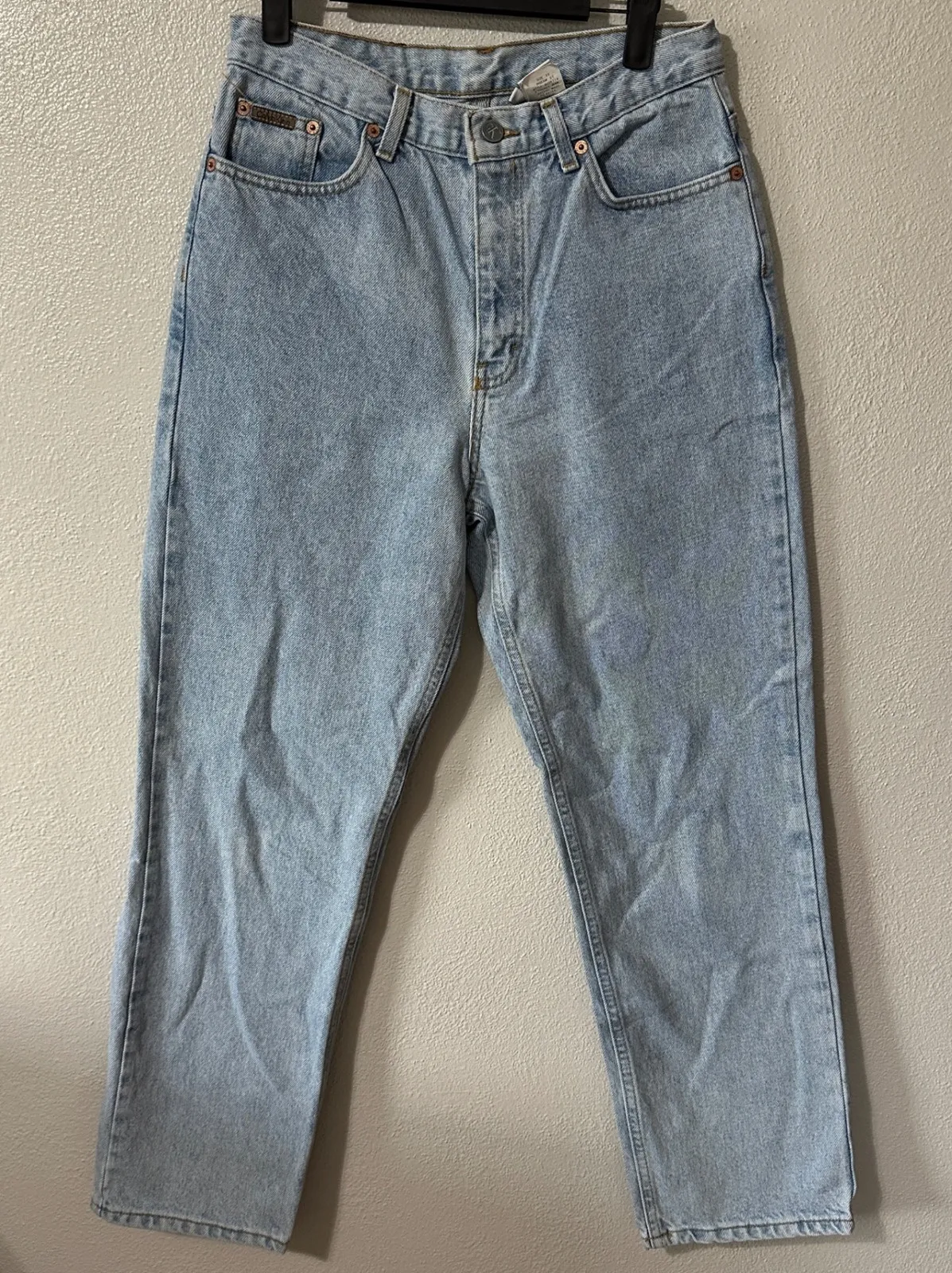 Keywords: Calvin Klein jeans, vintage jeans, mom jeans, high waist jeans, light wash jeans, size 10 jeans, 90s jeans, retro jeans, denim jeans, cotton jeans, classic jeans, straight leg jeans, women's jeans, made in USA, enzyme wash