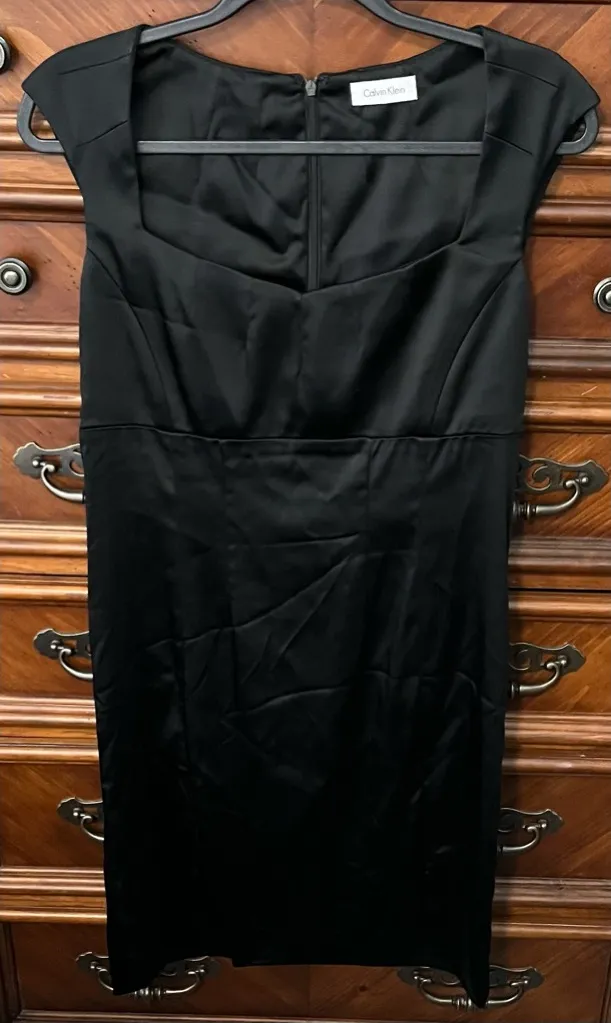 Vintage Calvin Klein Satin Sweetheart Neckline Empire Waist Mini Dress NO SIZE TAG Color Black M... Show more