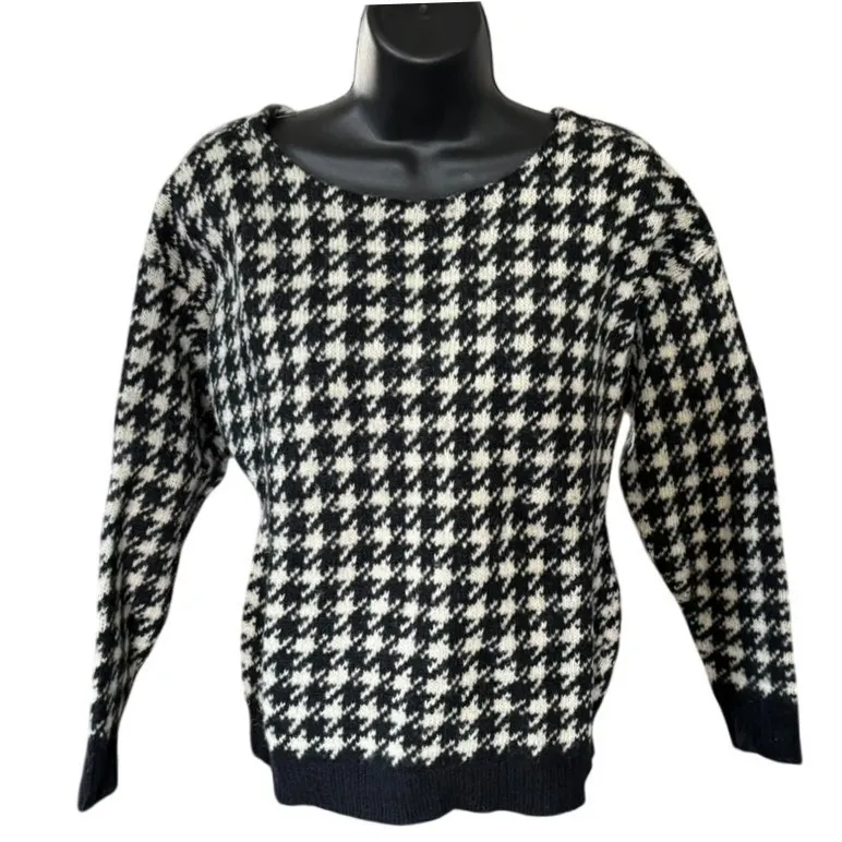 Vintage Cambridge Dry Goods 100% Wool Houndstooth Sweater Sz S Preppy Academia Black - $30 - From Jessica