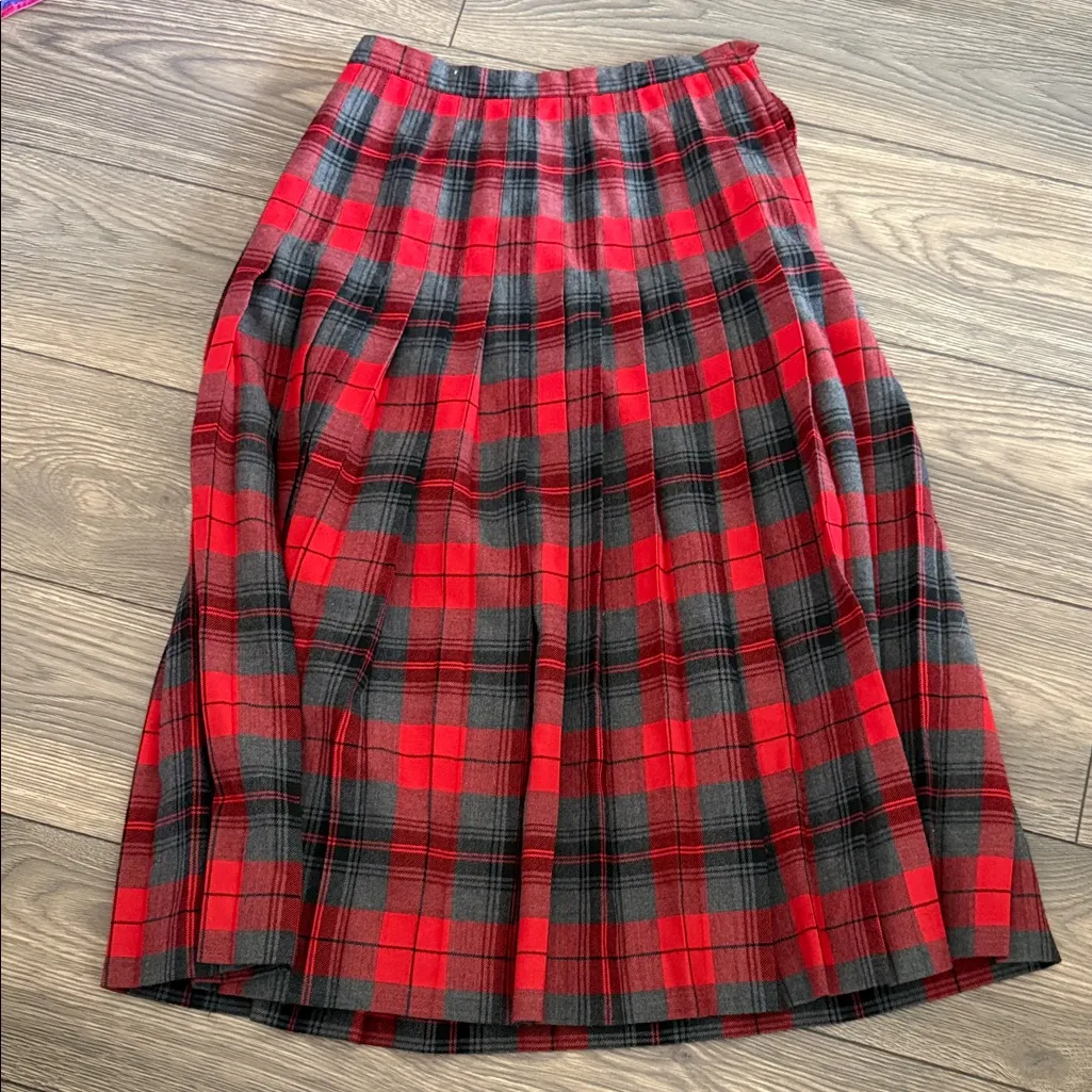 Vintage Canadian made pure virgin wool pleated Plaid Red and Black Skirt Size 10 - $129 - From Tracie