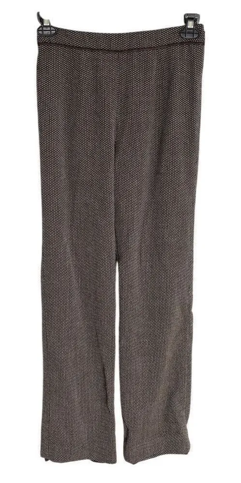 The Carlisle dress pants in size 2 are designed for women and feature a straight leg style. Made from a comfortable knit blend, these brown pants have a geometric pattern and a side zipper closure. Suitable for business occasions, they offer a regular fit. The pants are pre-owned. Brand: Carlisle Size: 2 Style: Dress Pants Color: Brown Department: Women Type: Pants Material: Knit Blend Leg style: Straight Features: Side Zipper Closure: Zip Pattern: Geometric Occasion: Business Fit: Regular Flat measurements Waist: 13” Inseam: 32” Rise: 11” 0249
