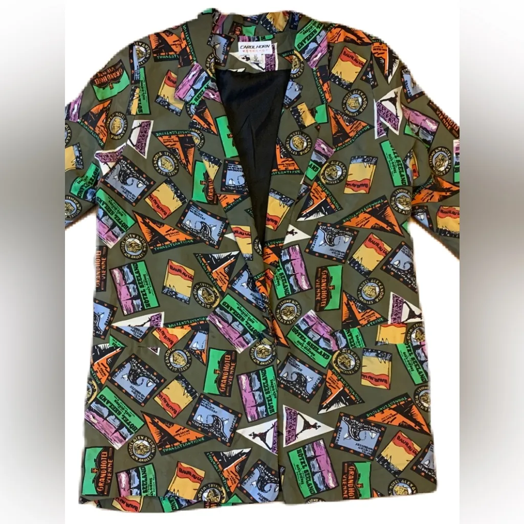 Vintage Carol Horn Workshop Art Travel Stamp Boyfriend Blazer SZ Small Green - $36 - From Kim