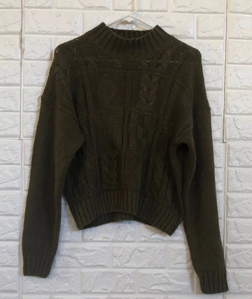 Vintage casual corner olive green cropped cable knit mock neck sweater Size M - $29 - From Diana