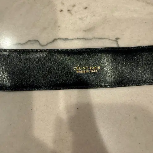 For sale is this authentic vintage CELINE Paris belt in sleek black leather with the signature gold-... Show more
