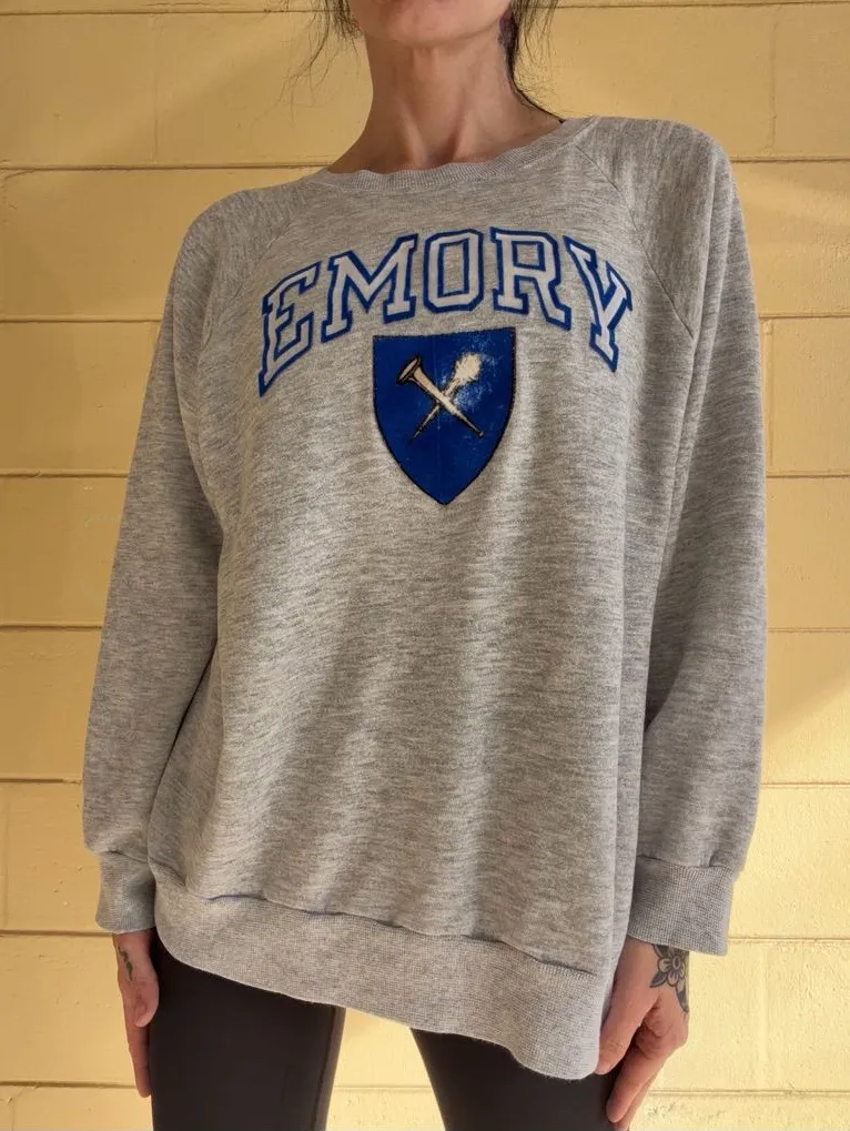 1980s vintage emory womens champion sweatshirt Some wear present on blue area of front logo as photo... Show more