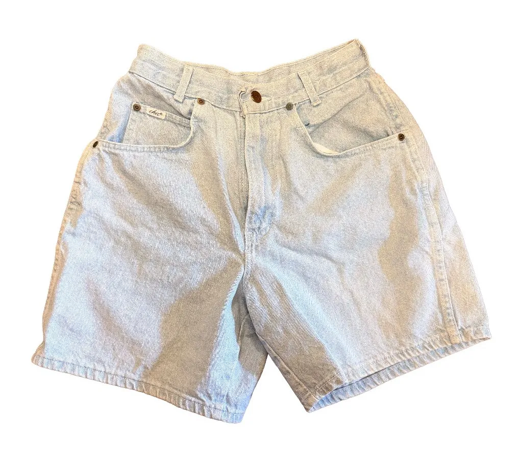Vintage high-waisted denim shorts from Chic brand featuring a relaxed mom short silhouette in classic light wash. Made in USA with quality construction. These shorts epitomize effortless 90s casual style with their high 12.5" rise and easy fit through the hip and leg. Brand: Chic (vintage American brand) Size: 9 (vintage sizing, fits modern 2-4) Color: Light blue wash Style: High-waisted mom shorts, relaxed fit Inseam: 7" Measurements: Waist: 26" Hip: 36" Rise: 12.5" Length: 7" Condition: Good pre-owned vintage condition with expected vintage wear. No holes, stains, or damage. Perfect for Y2K fashion lovers, vintage denim collectors, or anyone seeking authentic 90s casual style. Pair with crop tops, vintage tees, or layer over tights for transitional weather.