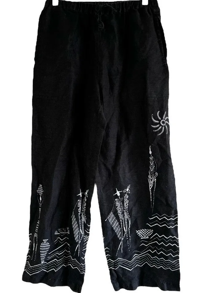Chico's Wide Leg Pants Aztec Tribal Print Pull On Elastic Waist 100% Linen size 1 converts to s... Show more