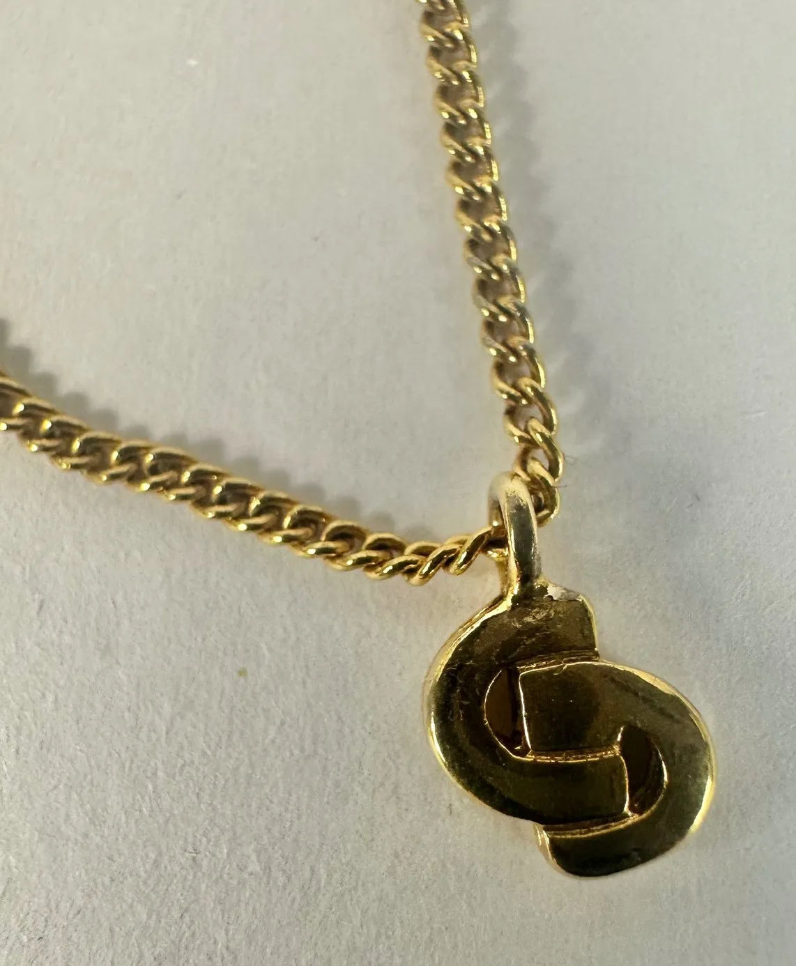 Elegant gold-tone chain necklace featuring the iconic CD logo pendant and a branded tag near the cla... Show more