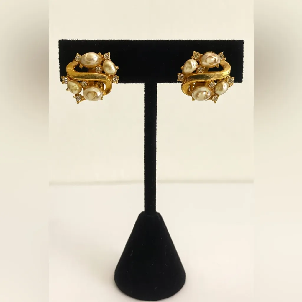 Vintage chunky gold toned twisty cluster rhinestone clip on earrings elegant gra - $35 - From Briahnna