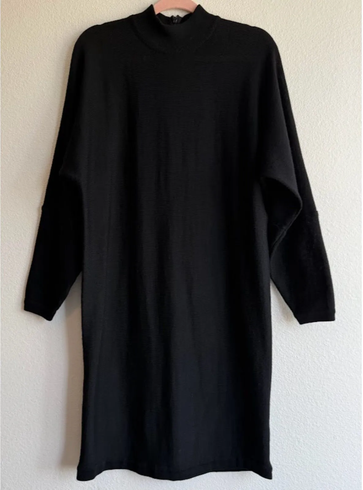 Vintage Claude Vernet 100% Merino Wool Dolman Sleeve Knit Sweater Dress in Black size Medium A time... Show more