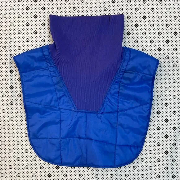 Stay warm and stylish with this vintage insulated neck warmer by Clayton Industries (style 115), made in Hong Kong. Featuring a classic royal blue quilted nylon body and a ribbed purple knit mock turtleneck collar, this 1970s/80s dickie-style layer fits under any jacket for added warmth without bulk. Lightly padded with a nylon/down fill blend, it’s ideal for vintage lovers, snow sport enthusiasts, or collectors of retro winterwear. Brand: Clayton Industries Inc. Style: Quilted down-filled neck warmer / dickie Color: Royal blue Woven & knit fabric: 100% nylon Padding: Nylon & down fill Origin: Made in Hong Kong – 1970s/1980s vintage Tagged size: One Size (ribbed neck stretches to fit most) Material: 100% Nylon outer, Nylon & Down padding Era: Late 70s to early 80s vintage Condition: Great vintage shape with only minor wear vintage dickie, retro neck warmer, quilted down dickie, 70s winter wear, Clayton Industries outerwear, Hong Kong made, vintage ski accessory, nylon neck warmer, insulated collar bib, unisex vintage snow gear