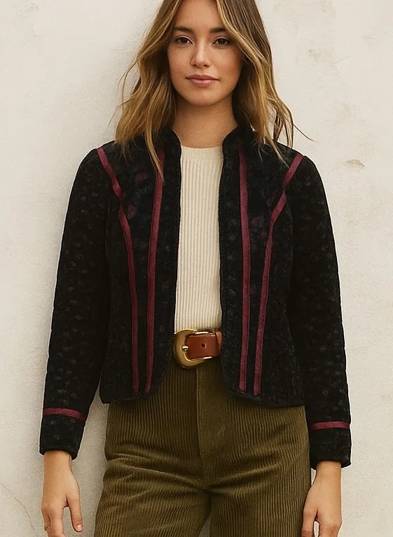 Vintage Cleveland Street mixed fabric quilted high neck jacket. Estimated SZ M Black Size M - $79 - From Ann