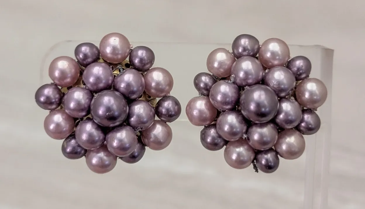 These earrings measure about 1". Made in Japan. Light marks to front. Some marks to rear. Some discoloration and signs of wear to clips. Preowned vintage earrings, sold as shown - I am unsure of material type(s) because of this. Pictures show different angles for you to review - while I attempt to note any defects, some tarnish/signs of wear may be visible that are not otherwise stated. Earrings are tested and photographed on a thin/smooth earring stand (not included) to show that the clips are in working order. I ship quickly and provide tracking information but delivery times are an estimate. Item is located in the United States.