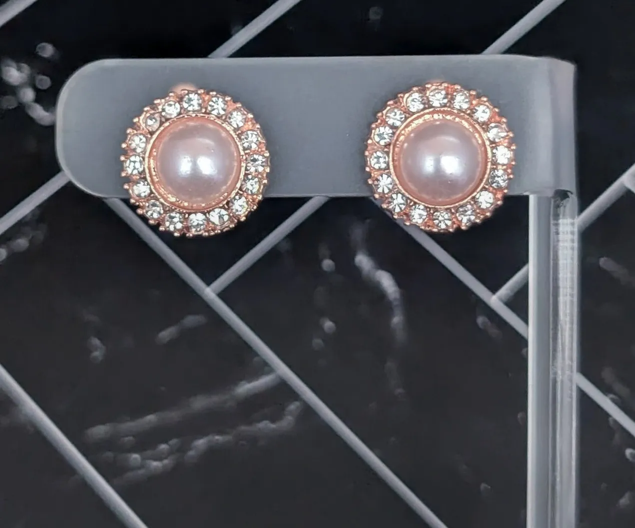 These earrings measure halfway between 5/8" & 3/4". Light marks to faux pearls. I am unsure of the m... Show more
