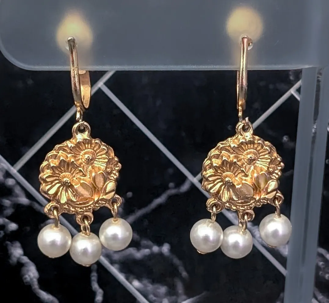 These earrings measure a bit over 1 & 5/8". Measurment includes top part of earring. Some gold tone wear to moving parts and to the inside of the clips. Preowned vintage earrings, sold as shown - I am unsure of material type(s) because of this. Pictures show different angles for you to review - while I attempt to note any defects, some tarnish/signs of wear may be visible that are not otherwise stated. Earrings are tested and photographed on a thin/smooth earring stand (not included) to show that the clips are in working order. If you have any questions please feel free to drop me a message.
