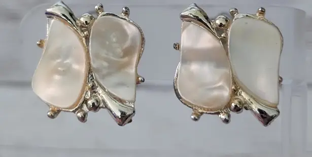 These earrings measure about 1 & 1/8". Very shiny and refelctive at different angles. Some gold tone chipping to sides and rear. Green and brown tarnish and discoloration to rear. Preowned vintage earrings, sold as shown - I am unsure of material type(s) because of this. Pictures show different angles for you to review - while I attempt to note any defects, some tarnish/signs of wear may be visible that are not otherwise stated. Earrings are tested and photographed on a thin/smooth earring stand (not included) to show that the clips are in working order. I ship quickly and provide tracking information but delivery times are an estimate. Item is located in the United States. Country of manufacture cannot determined.