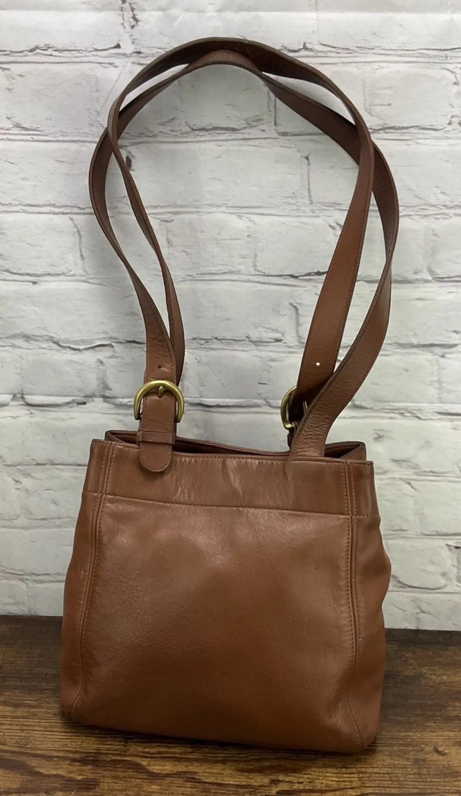 The Vintage Coach Brown British Tan Leather Waverly Soho Buckle Shoulder Bag #4147 is a stylish and... Show more
