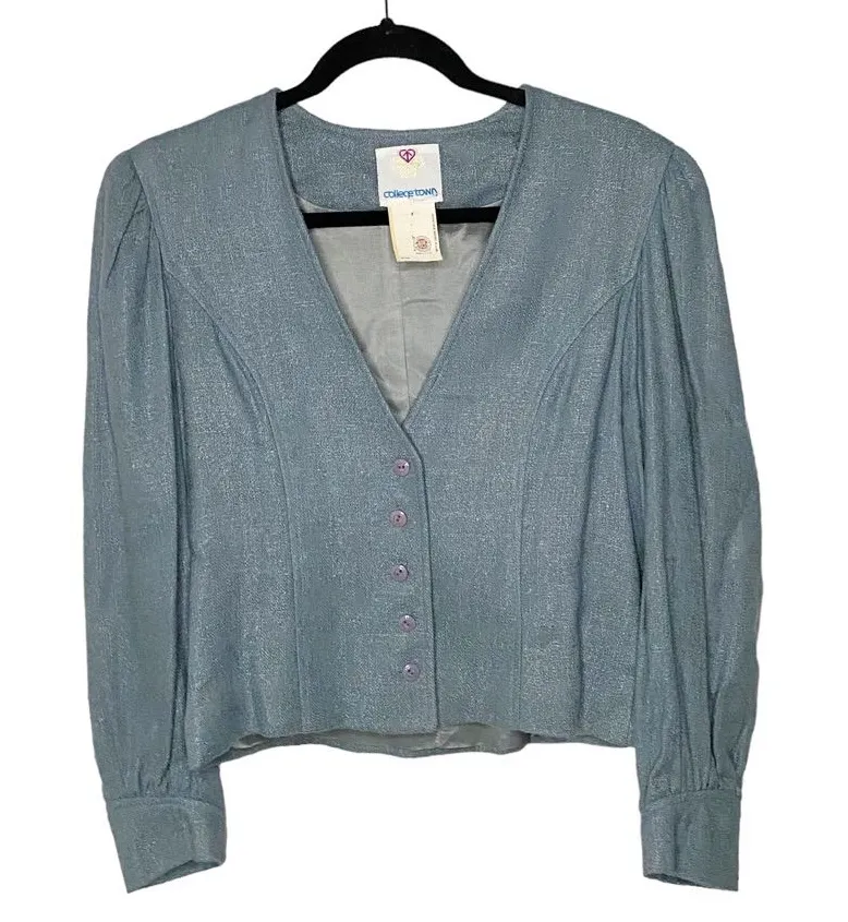 Excellent vintage condition. 1980’s College Town light periwinkle lined cropped blazer. The tag is a... Show more