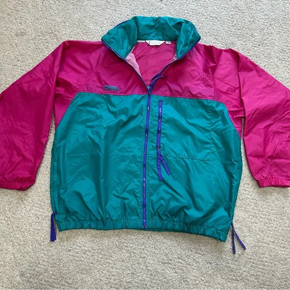 This Columbia raincoat combines functionality with style, featuring a vibrant pink and green color s... Show more
