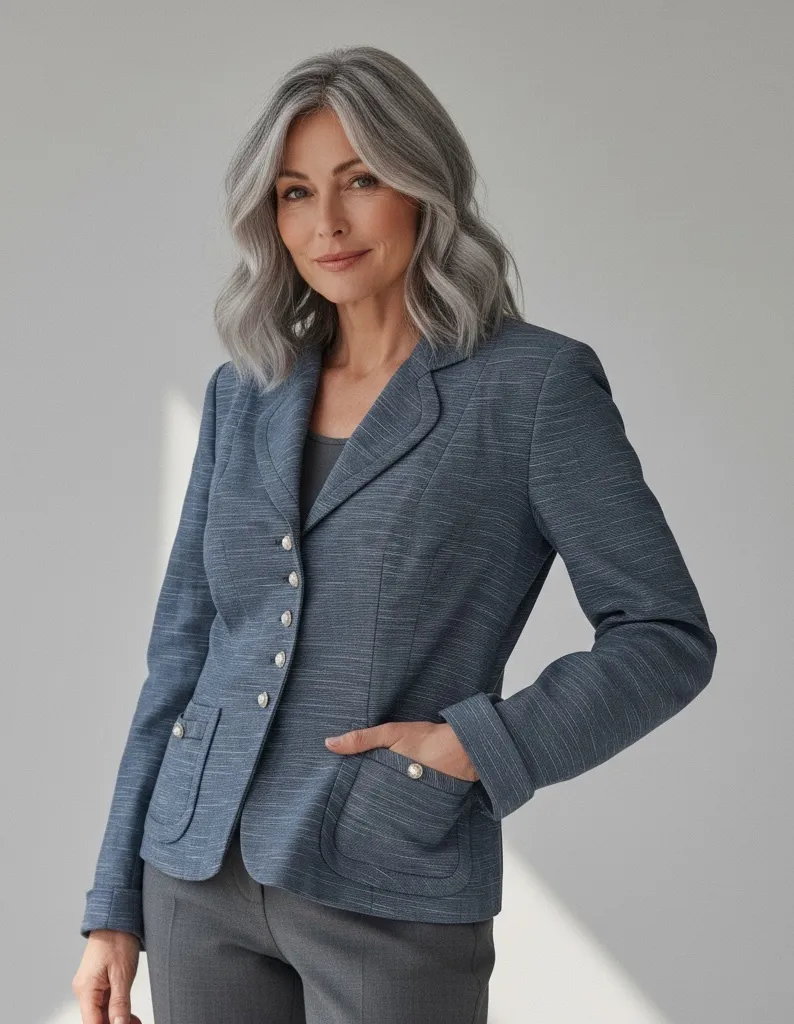 Unique Buttons More fitted/structured style Probably around a women’s size small Good condition! Measurements in photos No material content tag. This elegant blue blazer offers a sophisticated look for any occasion. Its tailored fit and stylish design make it a versatile addition to your wardrobe.