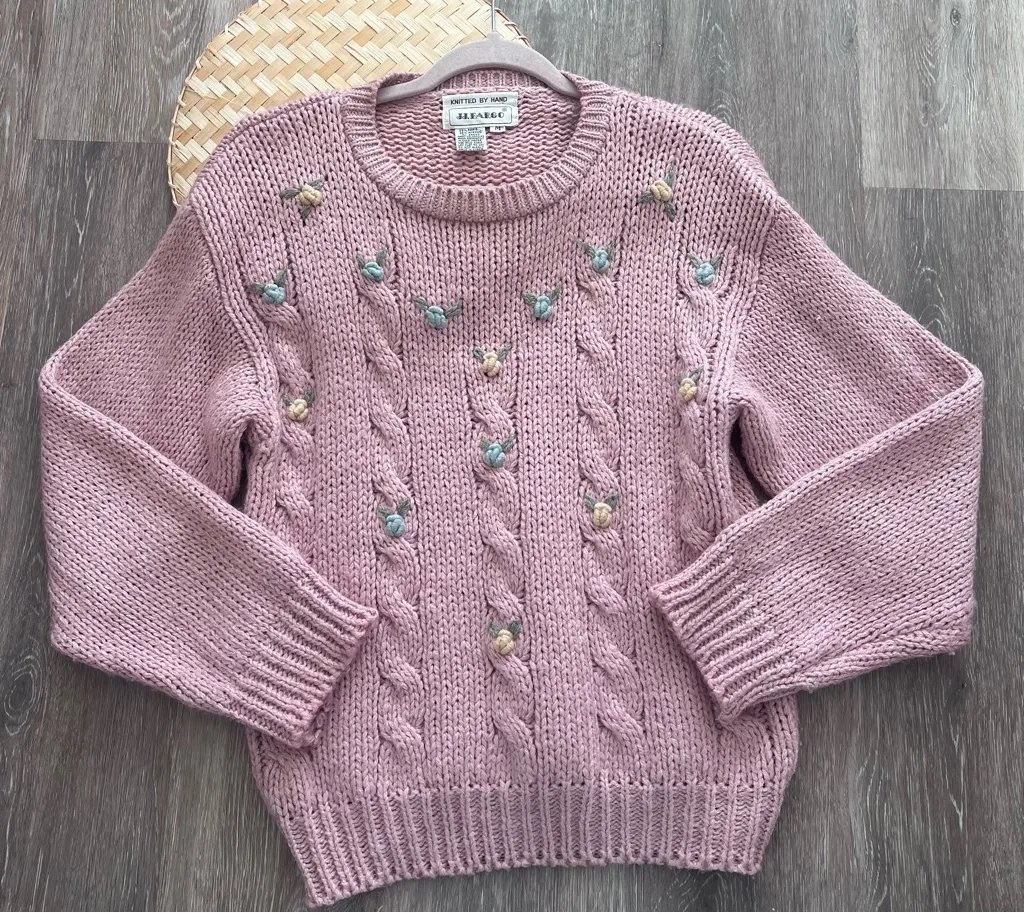 Vintage‎ cottagecore 3D embroidered floral sweater pink grannycore dainty Size M - $45 - From Alexandra