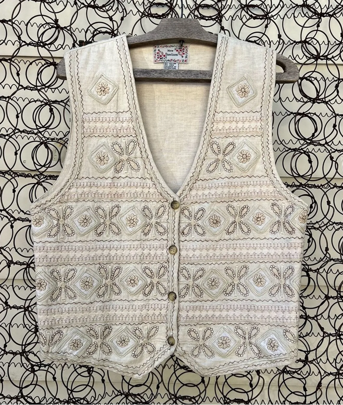 Vintage Cottagecore Pastel Embroidered Linen Cotton Blend Vest Granola Gorp Brand New Direction Tie... Show more