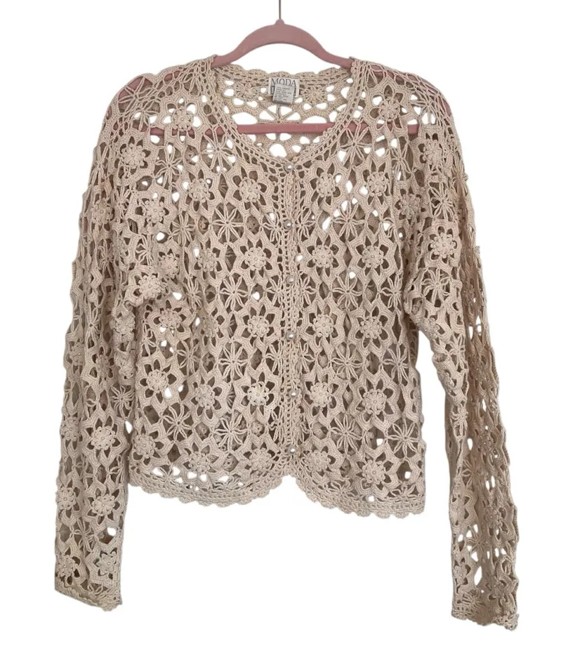Vintage crochet pearl beaded cardigan cottagecore boho moto Size M - $45 - From Alexandra