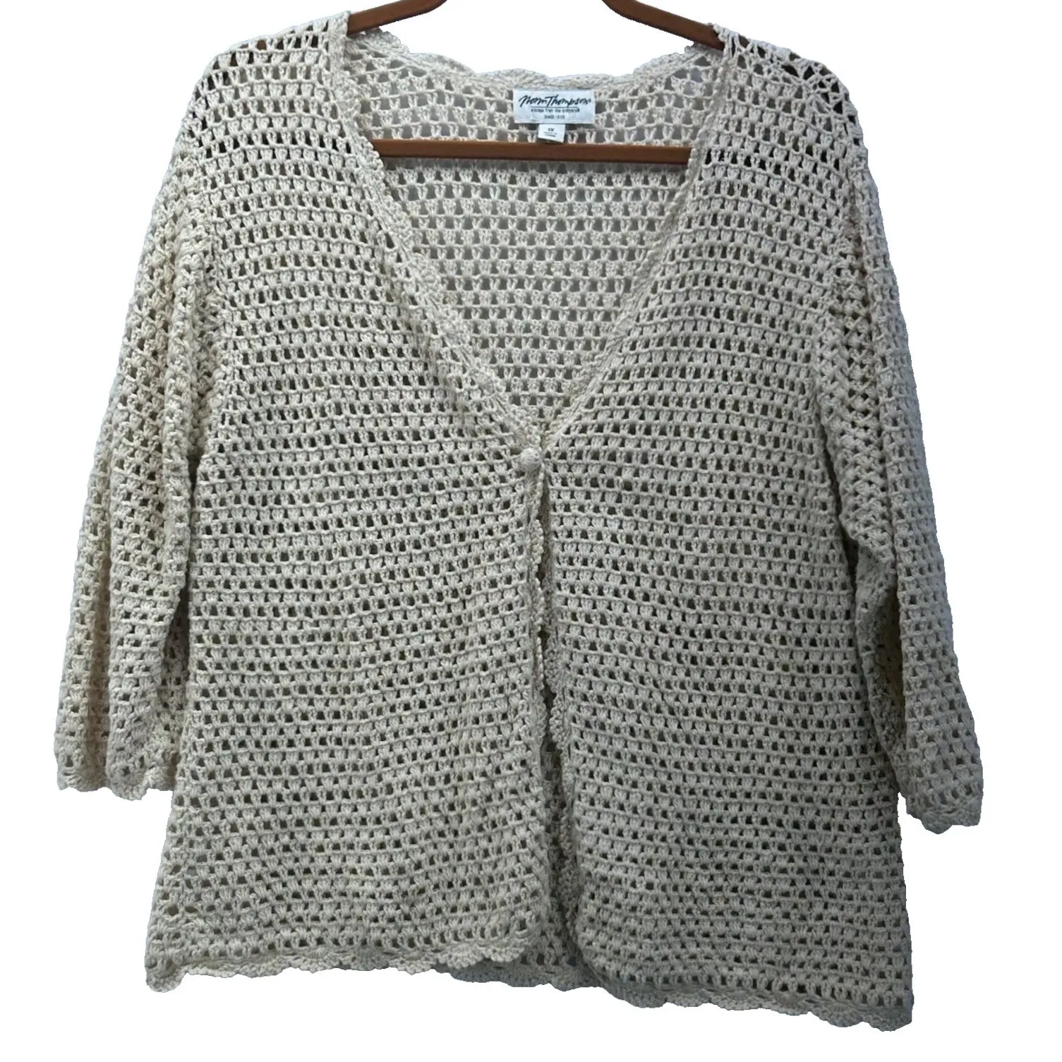 Airy elegance defines this crocheted cardigan, a seamless blend of comfort and style. Boasting an intricate open knit design, it offers breathability and a delicate texture that feels wonderful against the skin. A refined scalloped edge adds a touch of sophistication, while the neutral color ensures versatility. Measurements: • Pit to Pit: 19.5 in • Length: 24.5 in Thank you for checking my item. If you have any questions before and after purchase, please contact me first. Items came from smoke free, dog friendly home. I use a fabric softener that has fresh scent smell. Please check measurement before buying. My handling time is 1 business day. Have a great day!!!!!
