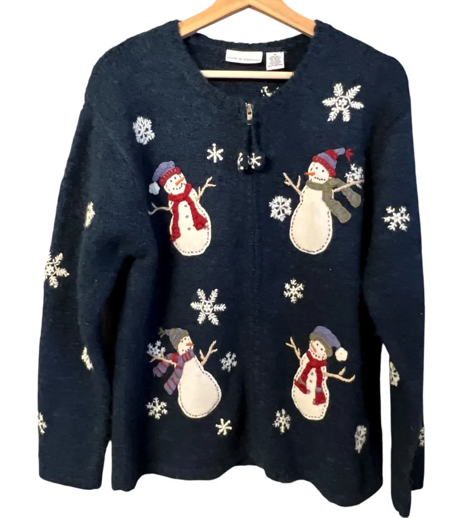 Vintage Croft & Barrow Snowman Zip Cardigan Sweater Christmas Holiday -Size MEDIUM -Excellent Preow... Show more