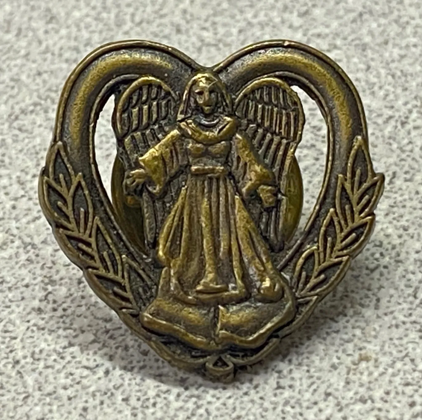 Preloved in excellent condition Please see all photos for close up details. Type: Pin Theme: Angels, Signs & Symbols Main Stone Color: Bronze Main Stone Shape: Heart Metal: Bronze Main Stone Treatment: Not Enhanced Shape: Heart Base Metal: Brass Country of Origin: United States Era: Undated Unit Type: Unit Keywords: angel pin, heart brooch, vintage pin, collectible, symbolic, religious, corporate gift, keepsake, bronze tone, angelic, protective symbol, fashion accessory, unique pin