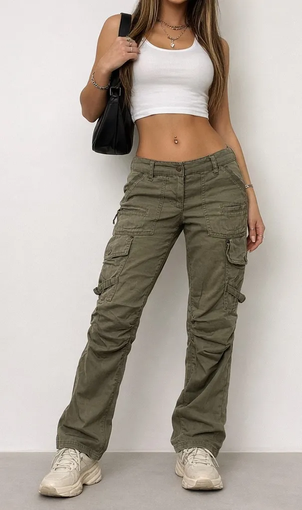 Size: XS Color: Olive green Measurements: Approximate Waist: 14.5” Hips: 18.5” Rise: 8” Inseam: 29” In excellent vintage condition Details: Y2K vintage Low rise Cargo pockets Ruched knees Straight leg Double button & zip fly closure Please let me know if you have any questions:) About Nineteen Daisies: Smoke free home. Same or next day shipping. Shop with confidence over 600+ 5 star ratings New items added daily! Y2K, low rise, cargo pants, olive green, streetwear, grunge, edgy, utilitarian, military inspired, 2000s, vintage, festival, model off duty, casual cool, urban, baggy, tapered leg, ruched knee, pocket detail, cargo style, Avril Lavigne, skater,