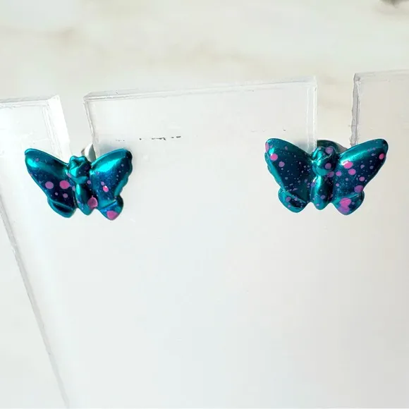 Vintage Dainty Teal and Pink Butterfly Earrings Studs Hypoallergenic Blue - $10 - From Stephanie