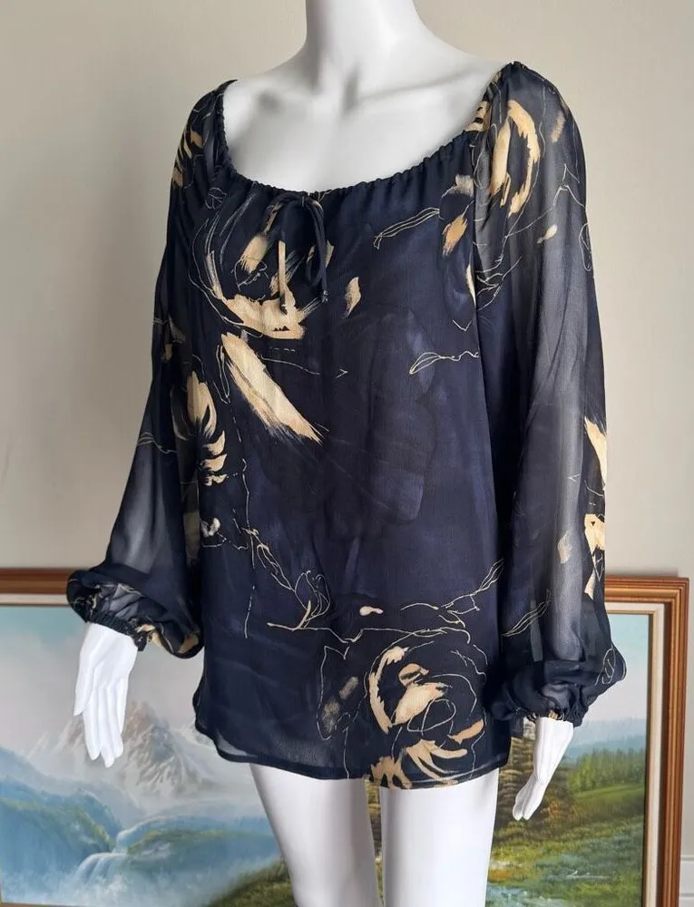 Vintage Dana Buchman Silk Floral Top With Sheet Balloon Sleeves Size M Blue Size M - $26 - From Jade