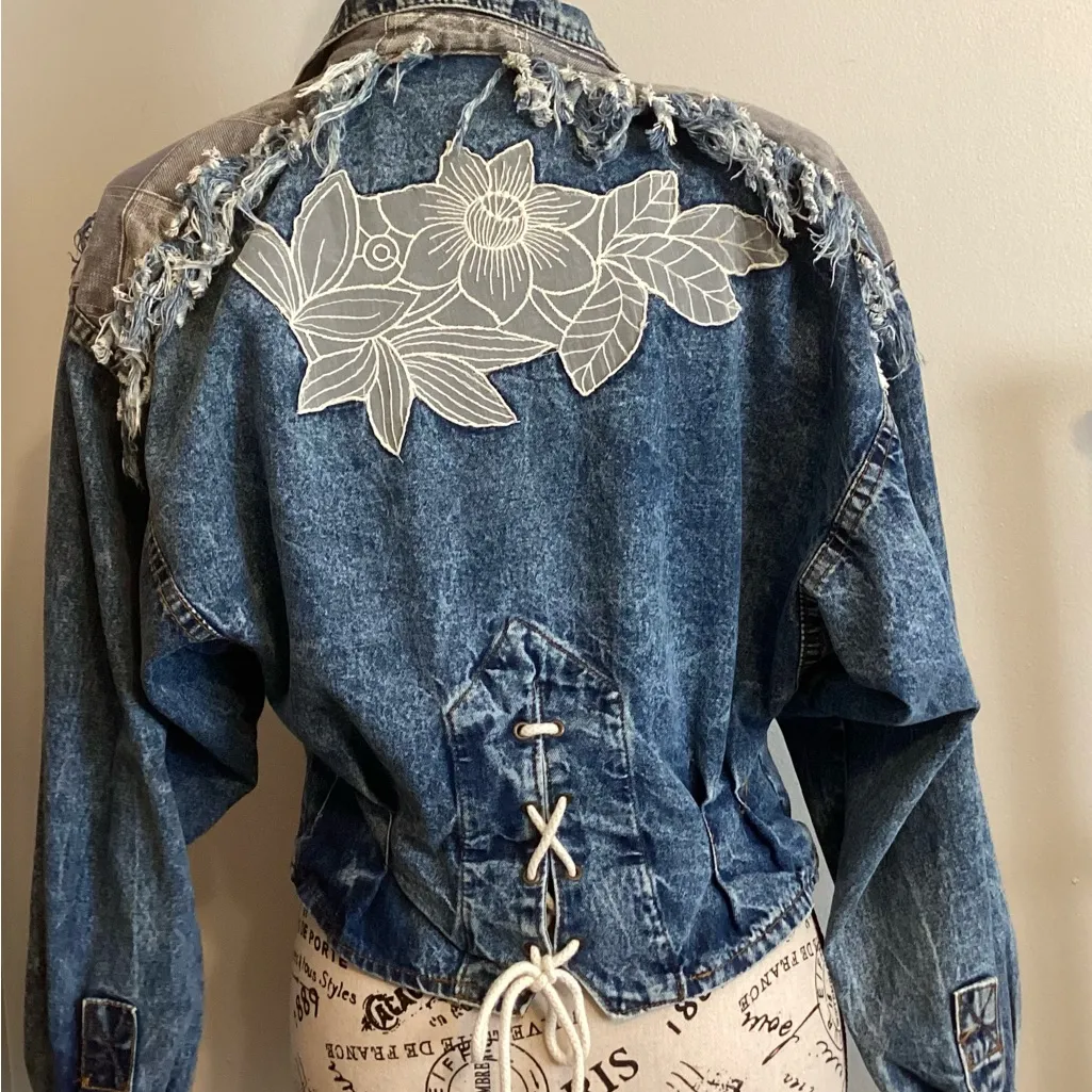 1980s designer Carreli denim jacket. The acid-washed blue color gives it a unique and edgy look with embroidered details that is perfect for hitting the town and seeing your favorite band. This jacket features a high end rock & roll style that is perfect for those who love the retro fashion trend. Made in Israel, this jacket is a true gem, the artistic details on this jacket are EVERYTHING!!! Get ready…EVERYONE WILL ASK YOU WHERE YOU GOT IT!