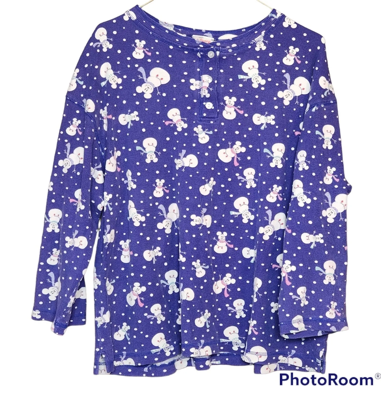 Vintage Disney Snowman Mickey Mouse Long Sleeve Purple Night Shirt Size Large/XL GUC- no stains or... Show more