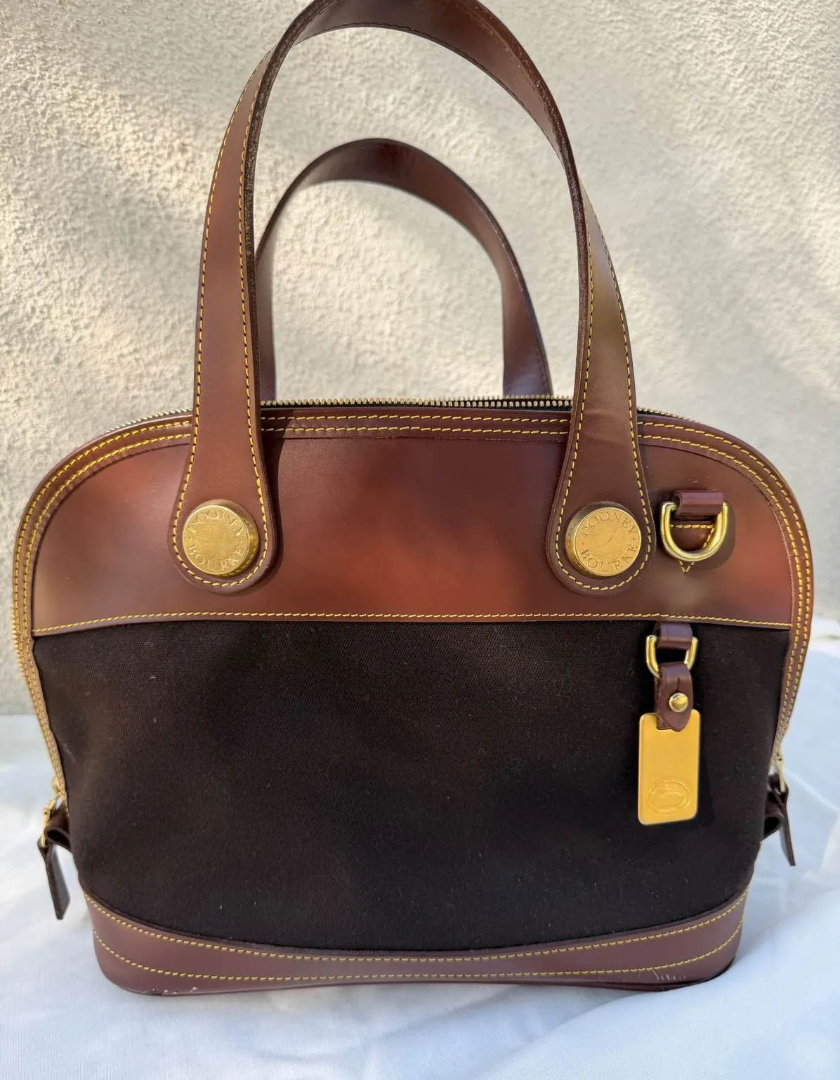 Dooney & Bourke satchel, a luxurious blend of rich brown leather and supple suede that exudes sophis... Show more