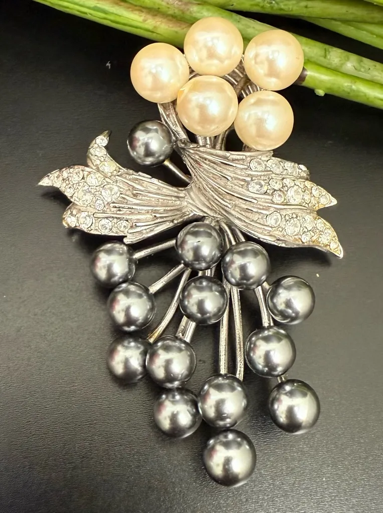 Vintage E. PEARL Erwin Pearl Ivory/Gray Faux Pearl Bouquet Flower Pendant Brooch 35g. Pre-owned with... Show more