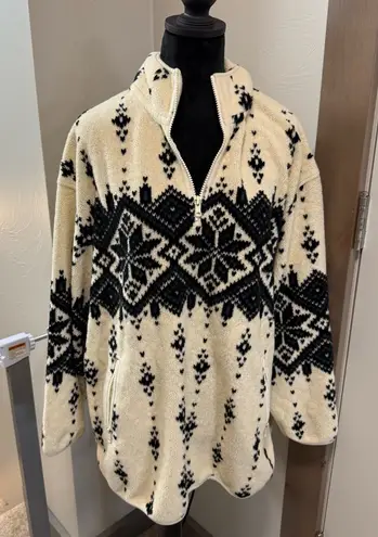 Vintage Eddie Bauer Fleece Pullover Sweater 1/4 Zip Snowflake Black White Winter Size L - $30 - From Abbey