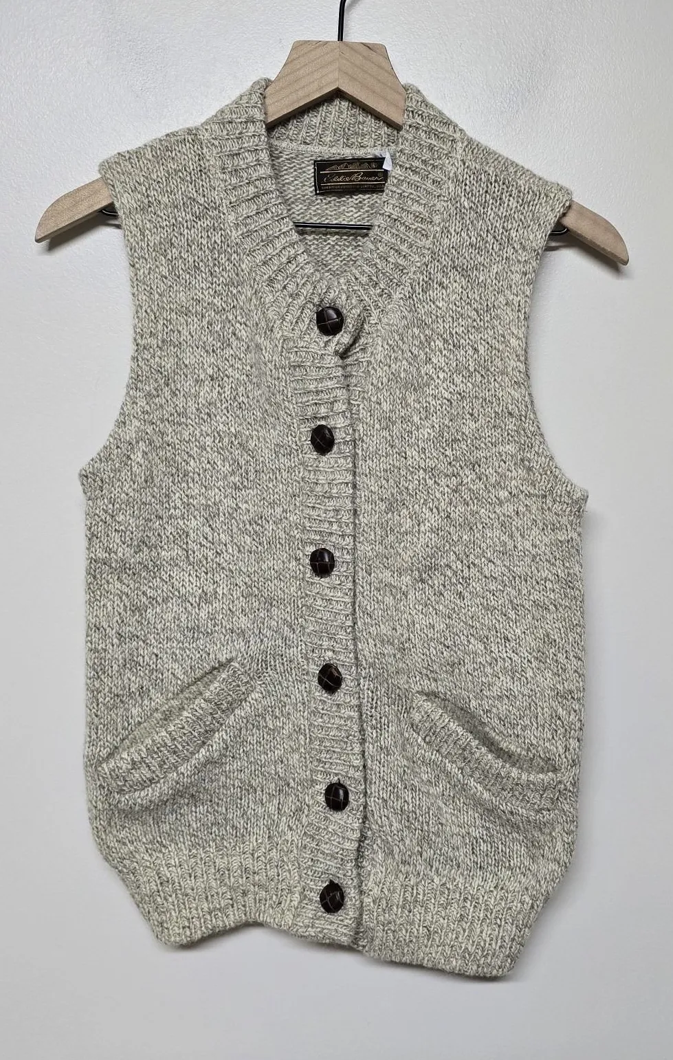 This Vintage Eddie Bauer Wool Sweater Vest is a classic and timeless piece for women in size small.... Show more