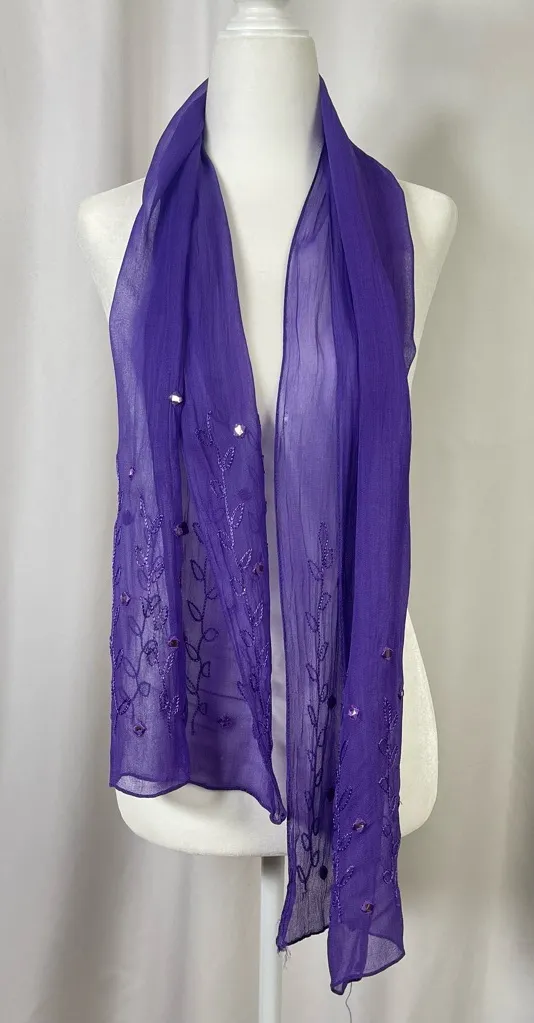 Vintage Embroidered Gauze Jewel Tone Boho Mirror Floral Scarf Shawl Elegant Purple - $25 - From Amanda