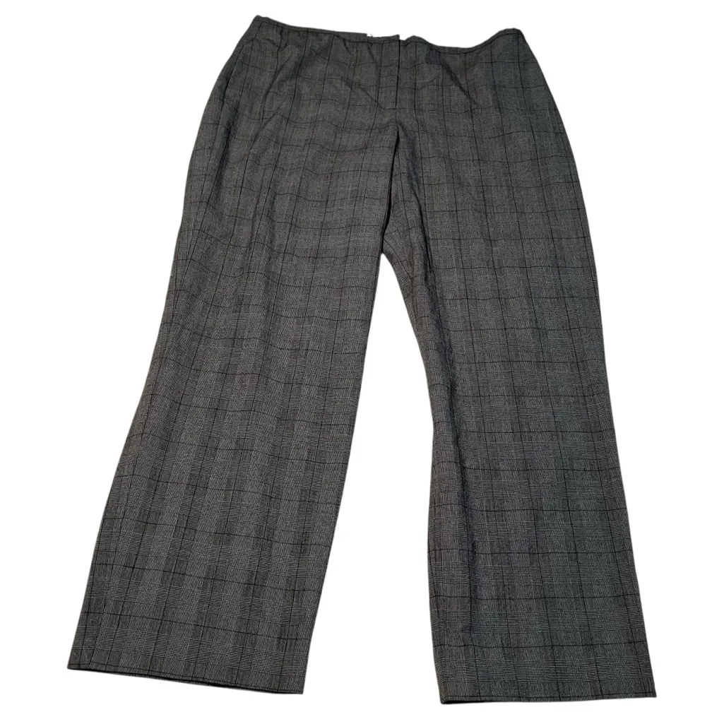 Good condition, minor wear/ pilling. Vintage. Emma James. Liz Claiborne. Trousers. Dress pants. Wide leg. Gray with plaid pattern. Size 18. Stretch 62% polyester, 33% rayon, 5% spandex. Waist 19” Inseam 30.5” Front Rise 12”. All measurements are approximate and taken lying flat. Smoke free home. No trades, offers welcome.