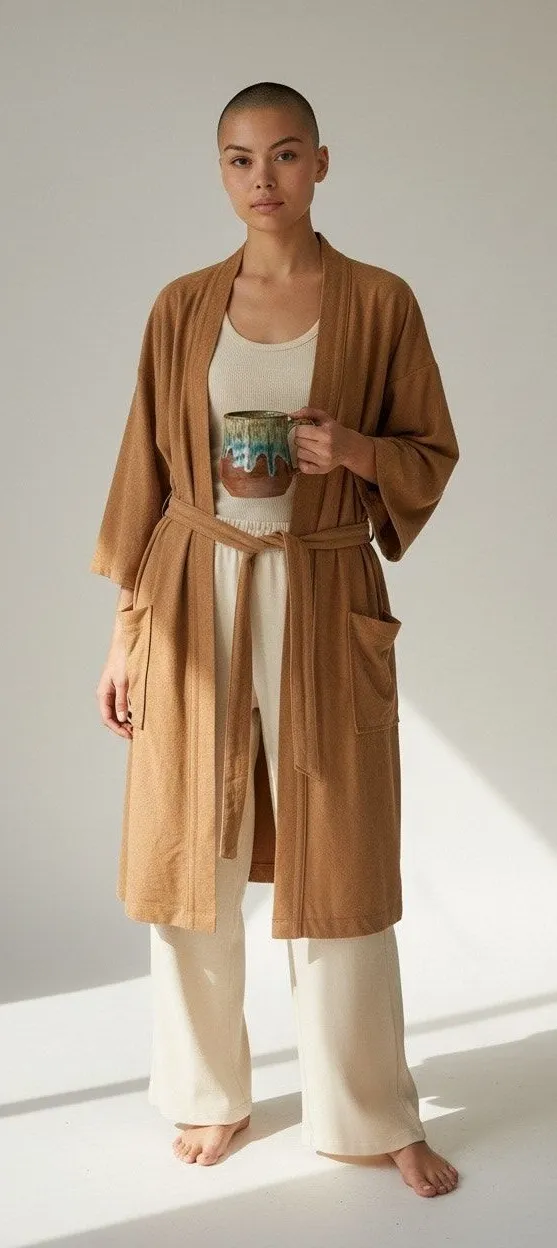 Vintage Enro Idle Hour Terry Golden Tan Kimono Robe Lounge wear belted One Size Size undefined - $45 - From Jennifer