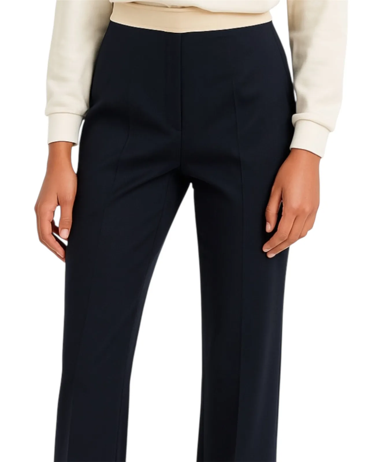 ESCADA Size 34 100% Wool Pants High Waisted Straight Wide Legs with Pleat Lines Side Zip Closure Cream Ribbed Pull On Waist Line Perfect for Work, A Special Occasion or casual wear excellent used condition approx 14” waist 10” rise 34” inseam