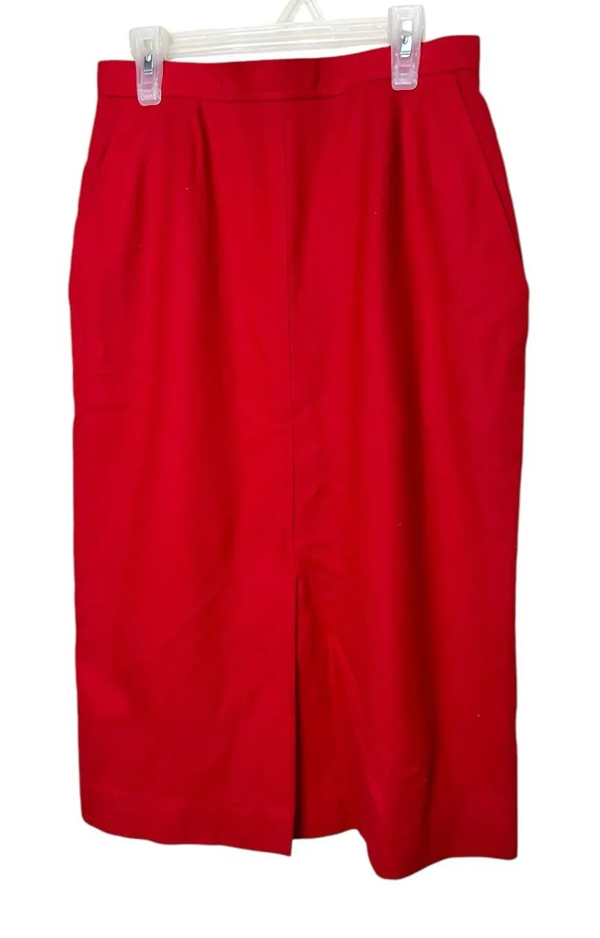 Vintage Evan Picone 100% Wool Skirt Womens Size 8 Red Lined Union Made USA. Very good condition. Slit in the front. Pockets. !!!!PLEASE SEE MEASUREMENTS!!!! Measurements Laying Flat Length: 28 inches Waist: 13 1/2 inches Feel free to ask questions.