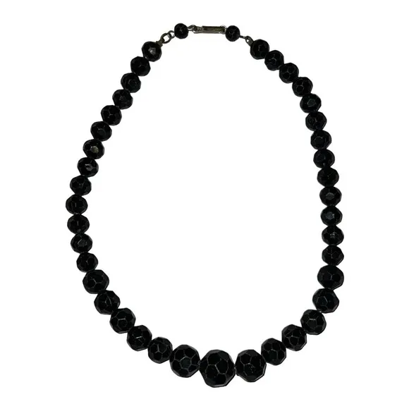 Vintage Faceted Black Beaded Necklace from Hong Kong. 14 inches long - $20 - From Janine